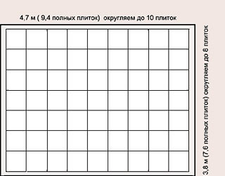 Итого по чертежу считаем 10х8=80 полных плиток ( 20 м2 )