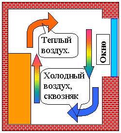располагаться под окнами и у других холодных стен (печь обычно ставя по центру дома, что и приводит к появлению сквозняков)