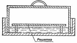 3.1.2. Ванны с гидравлическим затвором для хранения образцов (черт. 7) изготавливают из стойкого к коррозии материала (оцинкованная сталь). В ваннах устанавливают решетки для размещения на них образцов. Под решеткой всегда должна быть вода.